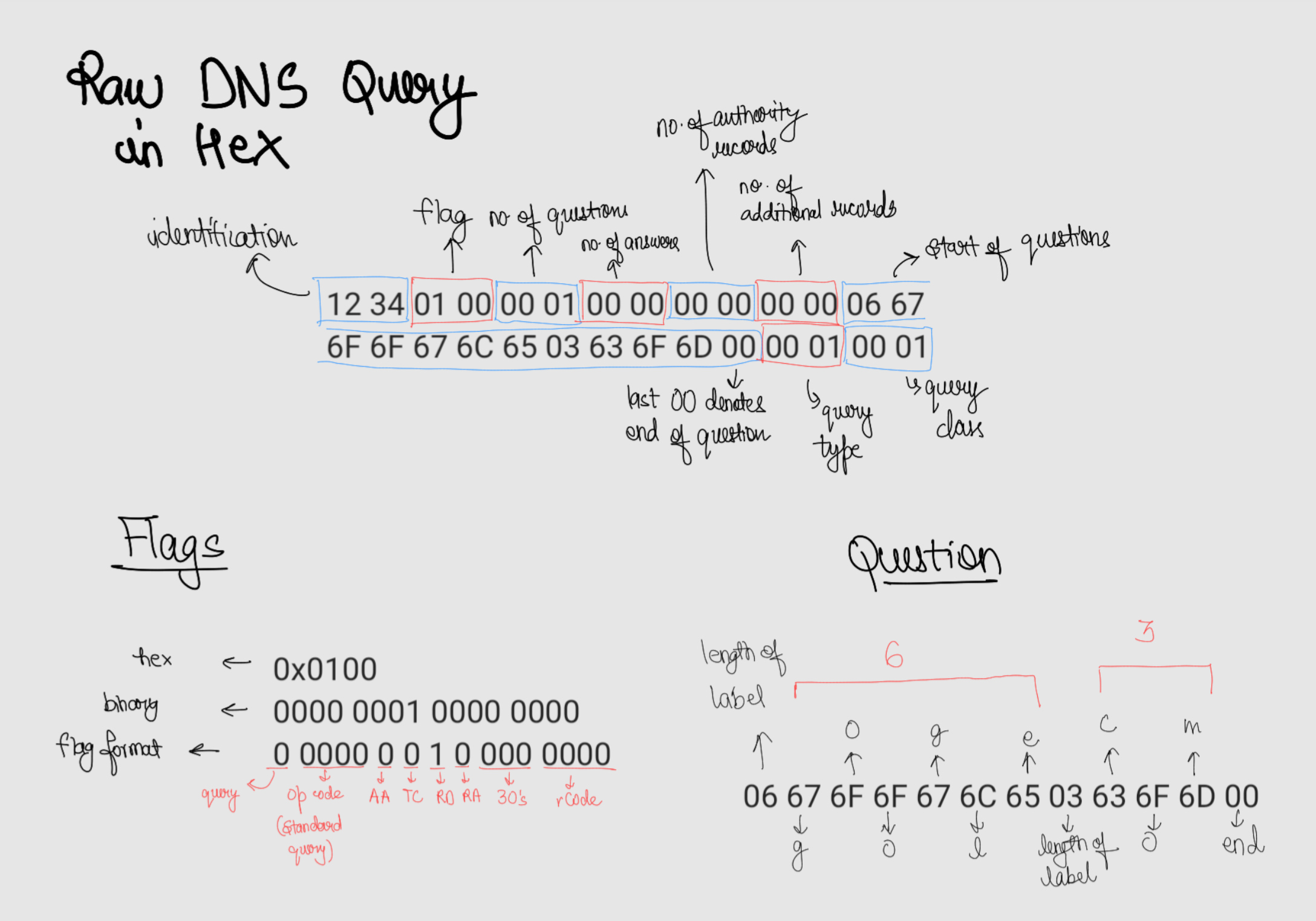 Full Query Message: 12 34 01 00 00 01 00 00 00 00 00 00 06 67 6F 6F 67 6C 65 03 63 6F 6D 00 00 01 00 01