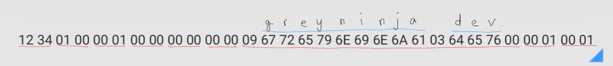 09 67 72 65 79 6e 69 6e 6a 61 03 64 65 76 00 : greyninja.dev